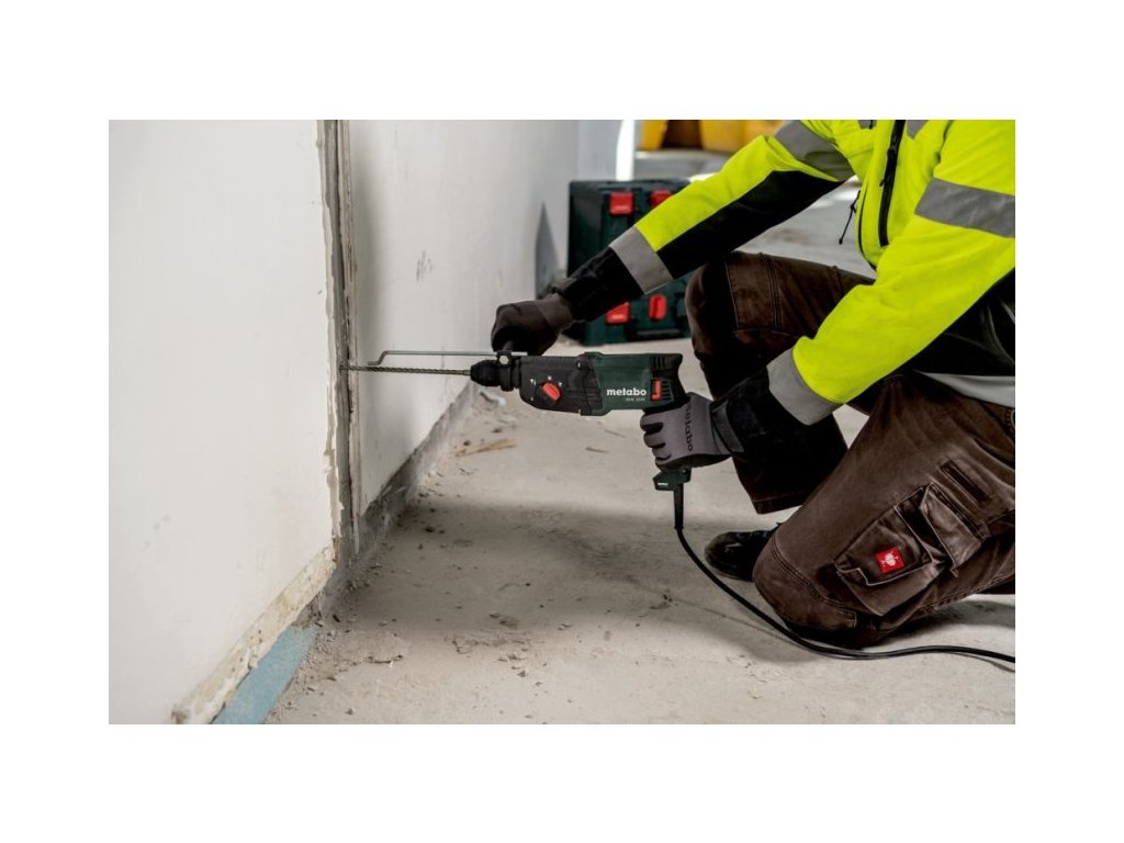 Metabo KHE 2245 je lehké a všestranné kombinované kladivo, které nabízí tři pracovní režimy v jednom stroji. Můžete s ním efektivně vrtat s příklepem do betonu a zdiva, vrtat bez příklepu do oceli a dřeva, nebo přepnout na funkci sekání pro lehčí úpravy. O precizní práci se stará elektronika Vario (V), která umožňuje regulaci otáček podle povahy materiálu. Klíčovým prvkem je bezpečnostní spojka Metabo S-automatic, která v případě zaseknutí vrtáku okamžitě mechanicky odpojí pohon a chrání tak uživatele před zraněním. Pro pohodlí při delší práci je kladivo vybaveno aretovatelným spínačem.