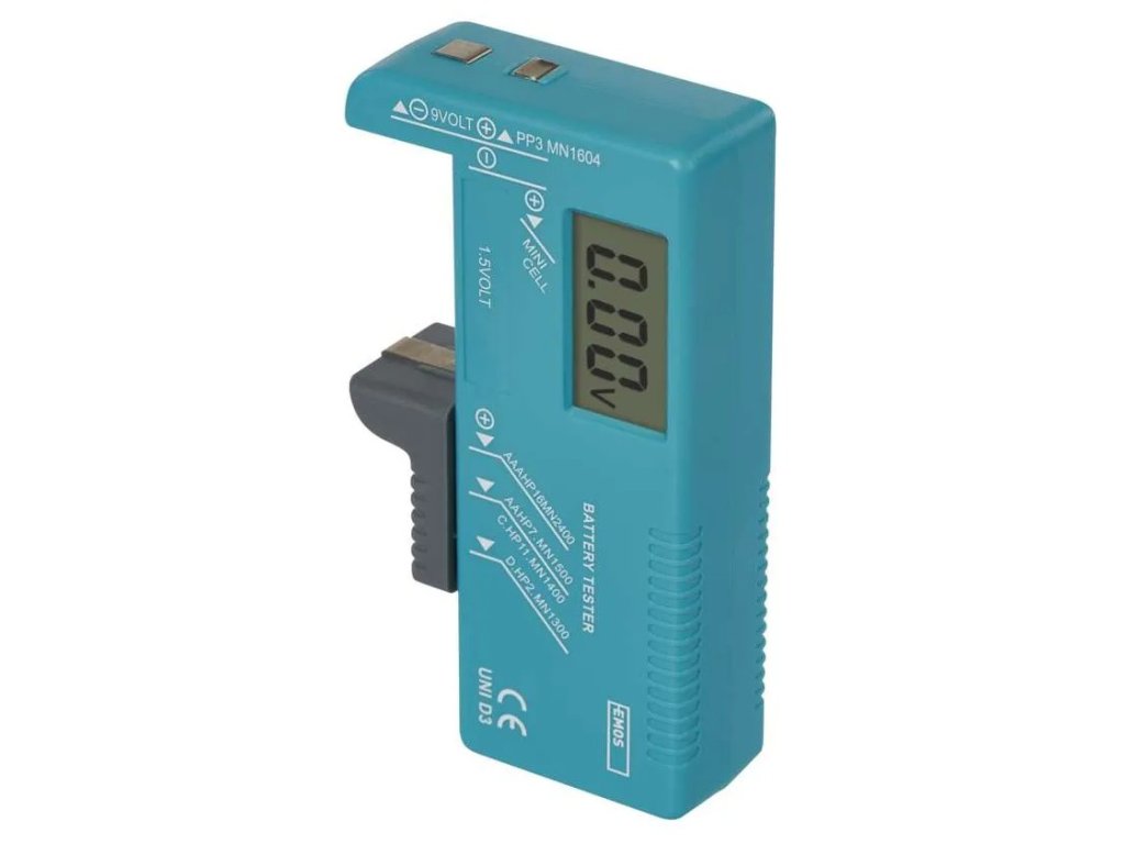 - Tester baterií určený k indikaci stupně nabití (vyčerpání) baterie.