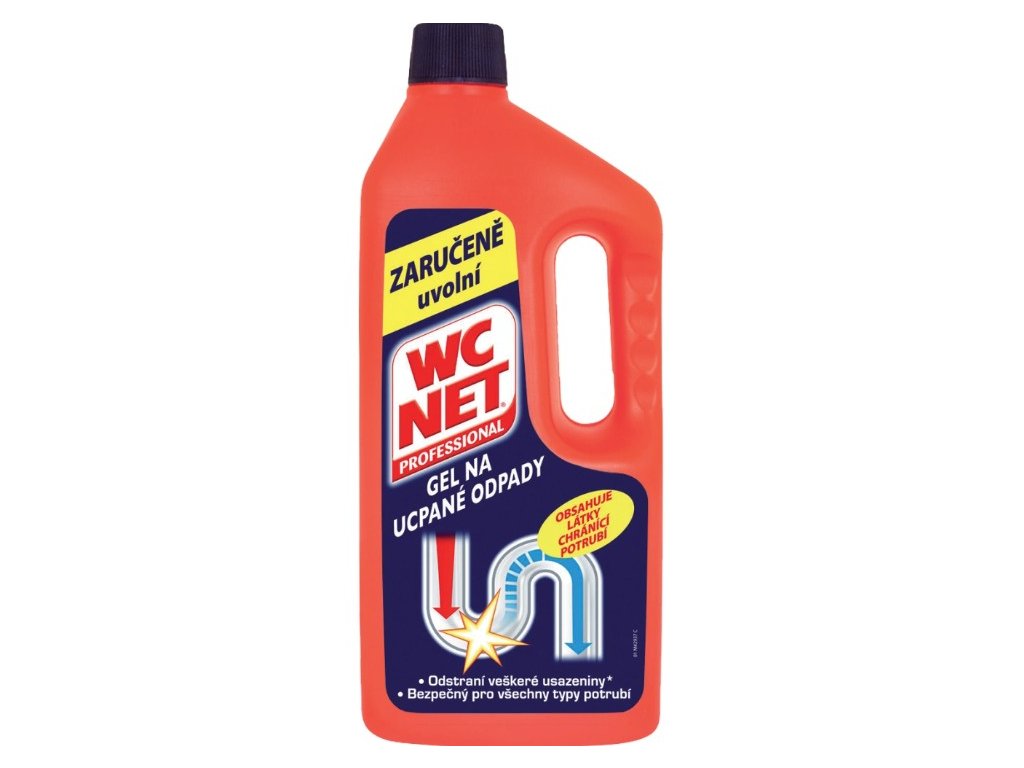 WC net professional gel na ucpané odpady 1 l je gelový přípravek na pročištění odpadů. Dobře rozpouští organické materiály, kuchyňské zbytky a vlasy. Odstraňuje veškeré usazeniny a chrání odpadní potrubí. Bezpečný pro všechny typy odpadů.
