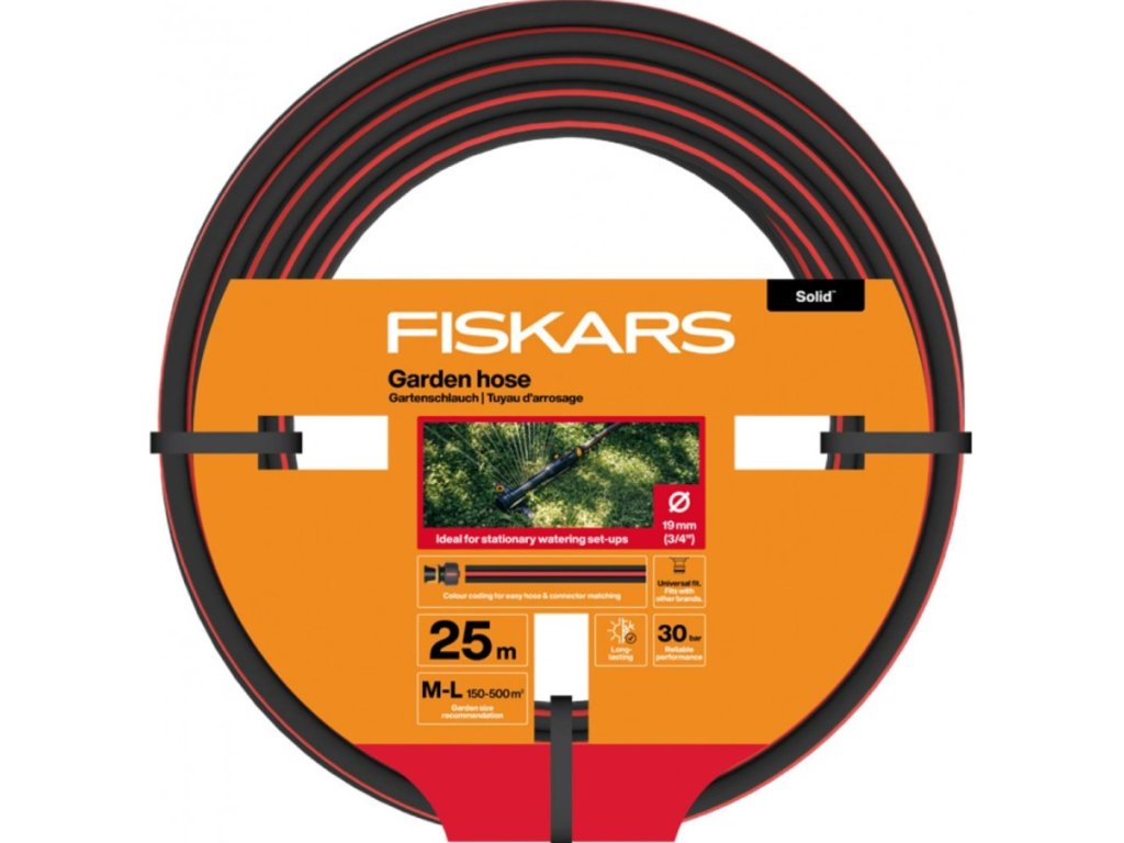 - Zavlažovací hadice Fiskars Solid 1/2" 25 m se spolehlivým výkonem a kvalitní značkou.